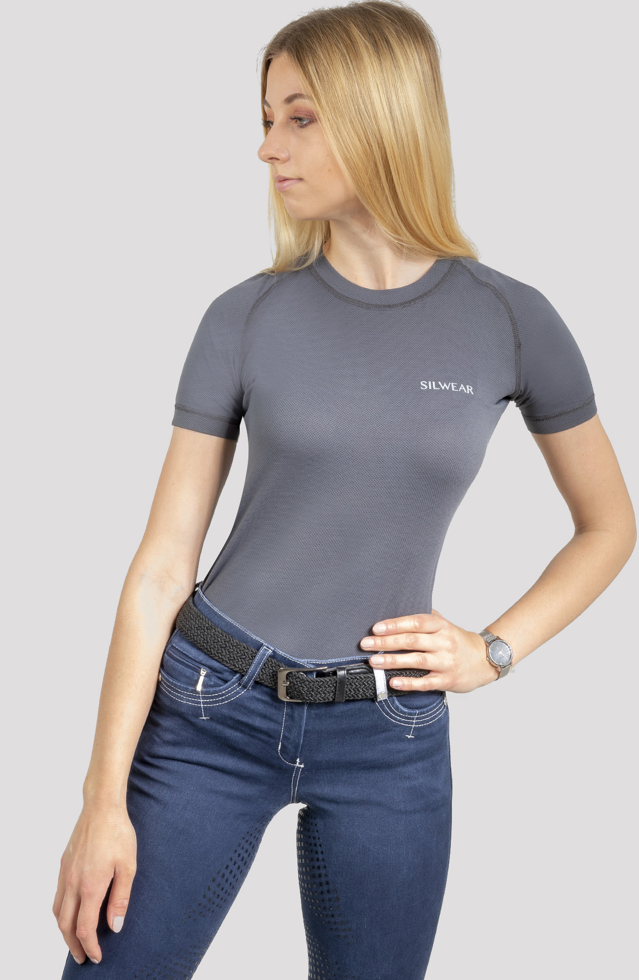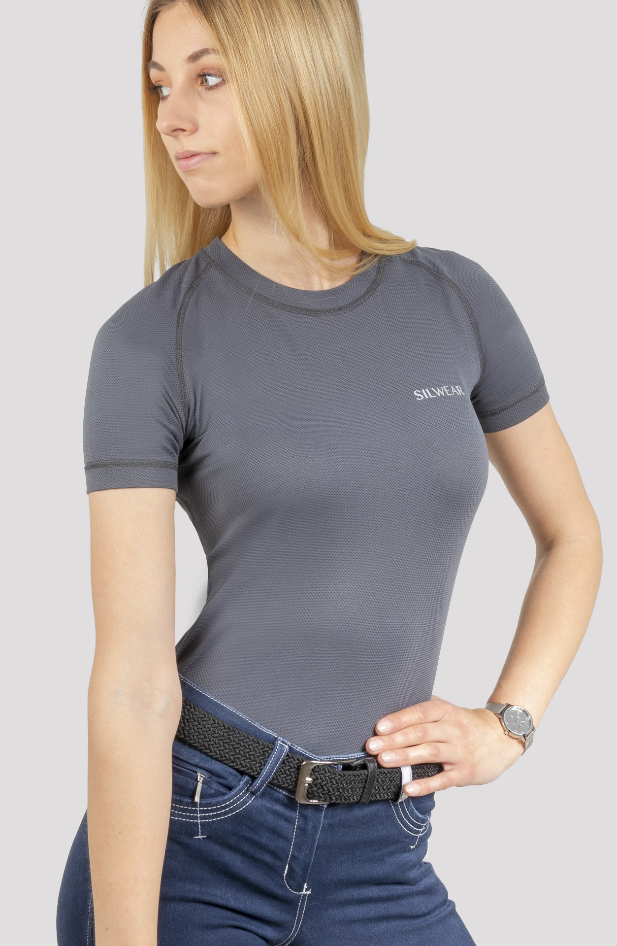 Professional, technical, with a delicate and airy structure. Thermoactive clothing (180g/m2) covered with silver ions.